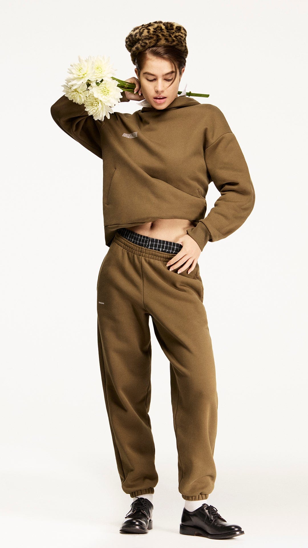 Today, I was really inspired by the colors of the collection I was working with. We're really focusing on these kinds of earthy tones—which read to me as super chic. What I love to do in my styling work, whether it be in editorial or on the red carpet, is mixing the casual with the formal. I think that was just really fun here. Adding a shirt or a smart shoe to a tracksuit disrupts what you think is normal and actually puts a really fun twist on something.