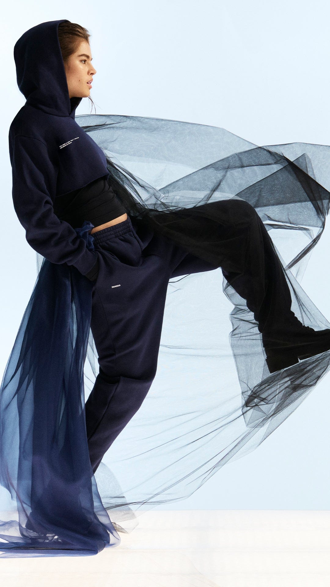 I was really inspired by the PANGAIA tracksuit and the vibrant colors they come in. I wanted to use them to try and create strong fashion imagery, by reshaping and creating a dynamic version of a tracksuit that you usually wouldn't see. We're so used to tracksuits being associated with sports but it now lives in everyone's wardrobe, so I wanted to take the idea of the tracksuit and bring it into a different dimension.