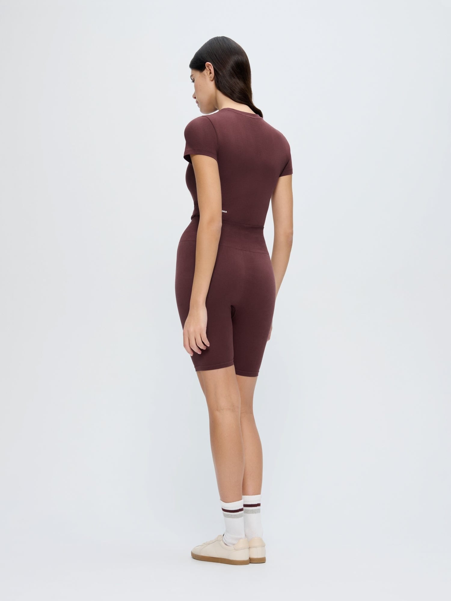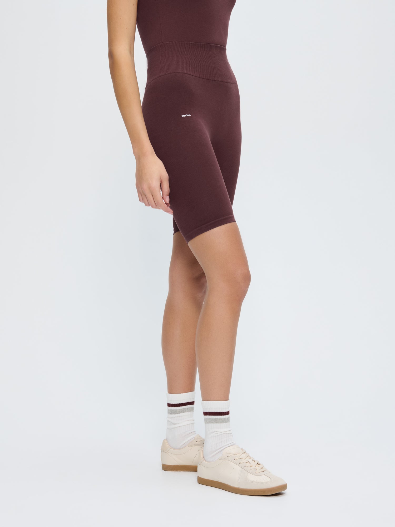 Effortless by nature. Expertly crafted from 67% cotton, 23% polyamide bio-based, and 10% Elastane Creora® the Cotton-Stretch Cycle Shorts in chestnut maroon offer an ultra-soft feel and an ultra-close fit. Designed for daily rituals, this just-landed athleisure wear staple was treated with PPRMINT™ oil to help keep it fresher for longer.