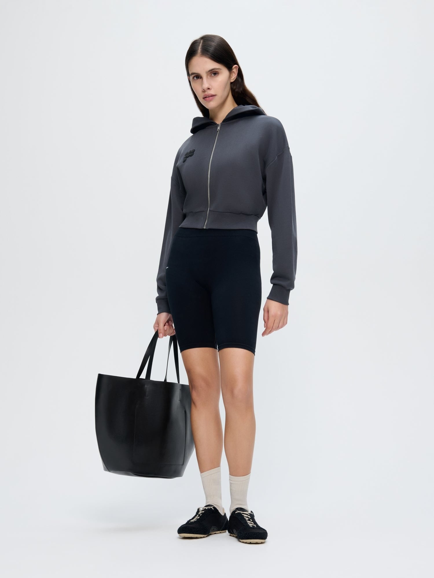 Ground yourself in nature-inspired neutrals. Expertly crafted from 100% OCS-certified organic cotton, the Cropped Zip Up Hoodie in smoked black offers a relaxed silhouette, an oversized fit and an ultra-soft feel. Designed to balance both warmth and breathability, this versatile essential was treated with PPRMINT™ oil to help keep it fresher for longer.