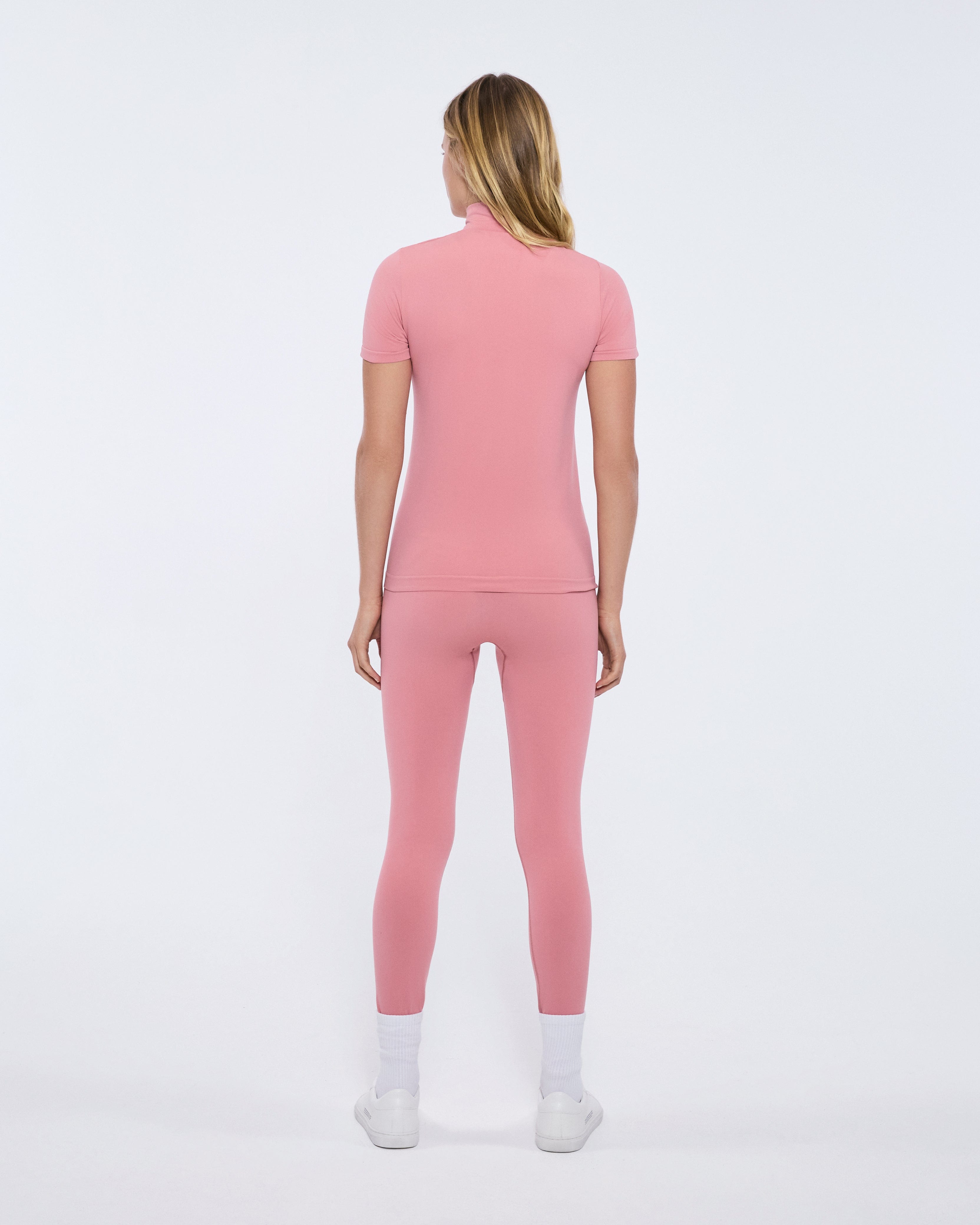 Womens 99% Bio-Based Zipped Short Sleeve Top - Dewy Rose